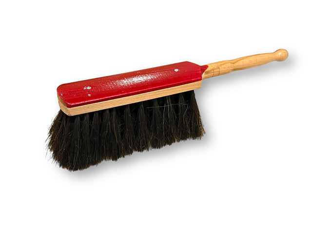 The brush boasts soft bristles made from genuine horsehair, perfect for cleaning with a light touch. The 2-1/2" trim is tightly packed into a resilient hardwood block. The handle, which extends from the 8" long brush head, is fashioned from the same sturdy hardwood, ensuring long-lasting durability.